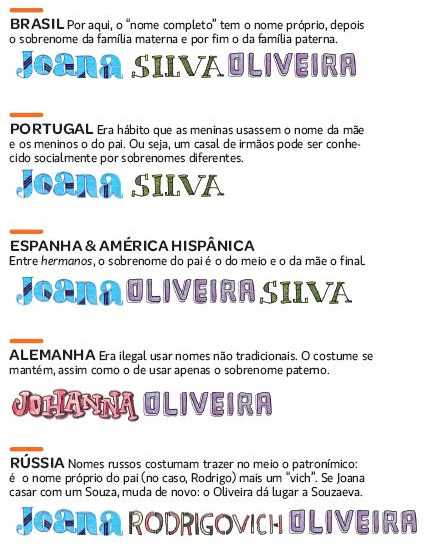 Veja como varia a composição oficial de um nome em vários países do Ocidente – não vamos nem entrar no Oriente.